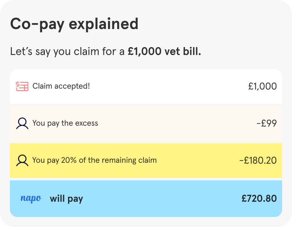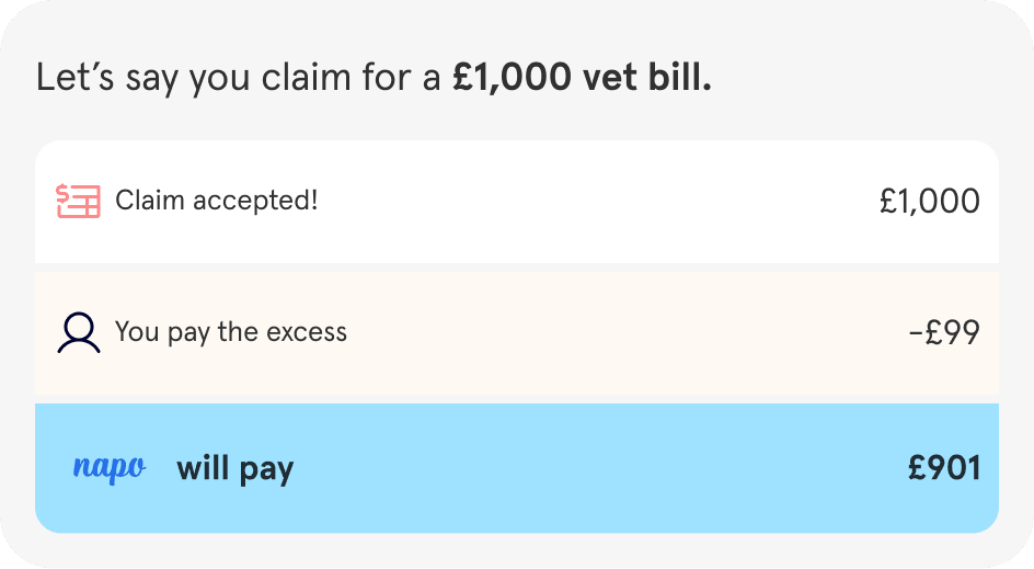 With Napo, your excess would be set at £99 and we would pay out the rest of the bill – either directly to the vet, or to you.